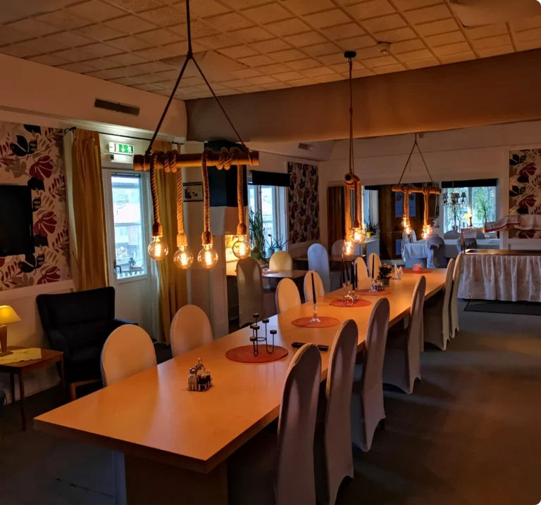 Slå dig ner i vår restaurang och avnjut en smakrik och vällagad middag i en trevlig atmosfär hos Hotell Färnlöf. På menyn finns klassiska rätter som tillagas med omsorg och passar både vardag och fest. Vår restaurang är öppen för såväl hotellgäster som besökare som vill äta gott i Ramsele. Här kan du samla familj, vänner eller kollegor för en avslappnad kväll med god mat och dryck.